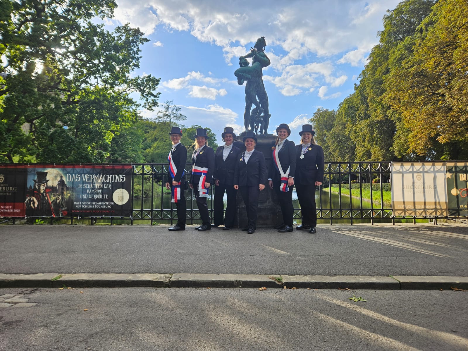 Am Sonntag, den 31. August 2025, nahmen unsere Fahnenträgerin Elena Böger und Frau Leutnant Iris Fletcher schon früh am Morgen den Weg nach Bückeburg auf sich. Sie folgten damit der Einladung von Stadtmajor Martin Brandt, an den traditionellen Rottbesuchen teilzunehmen.