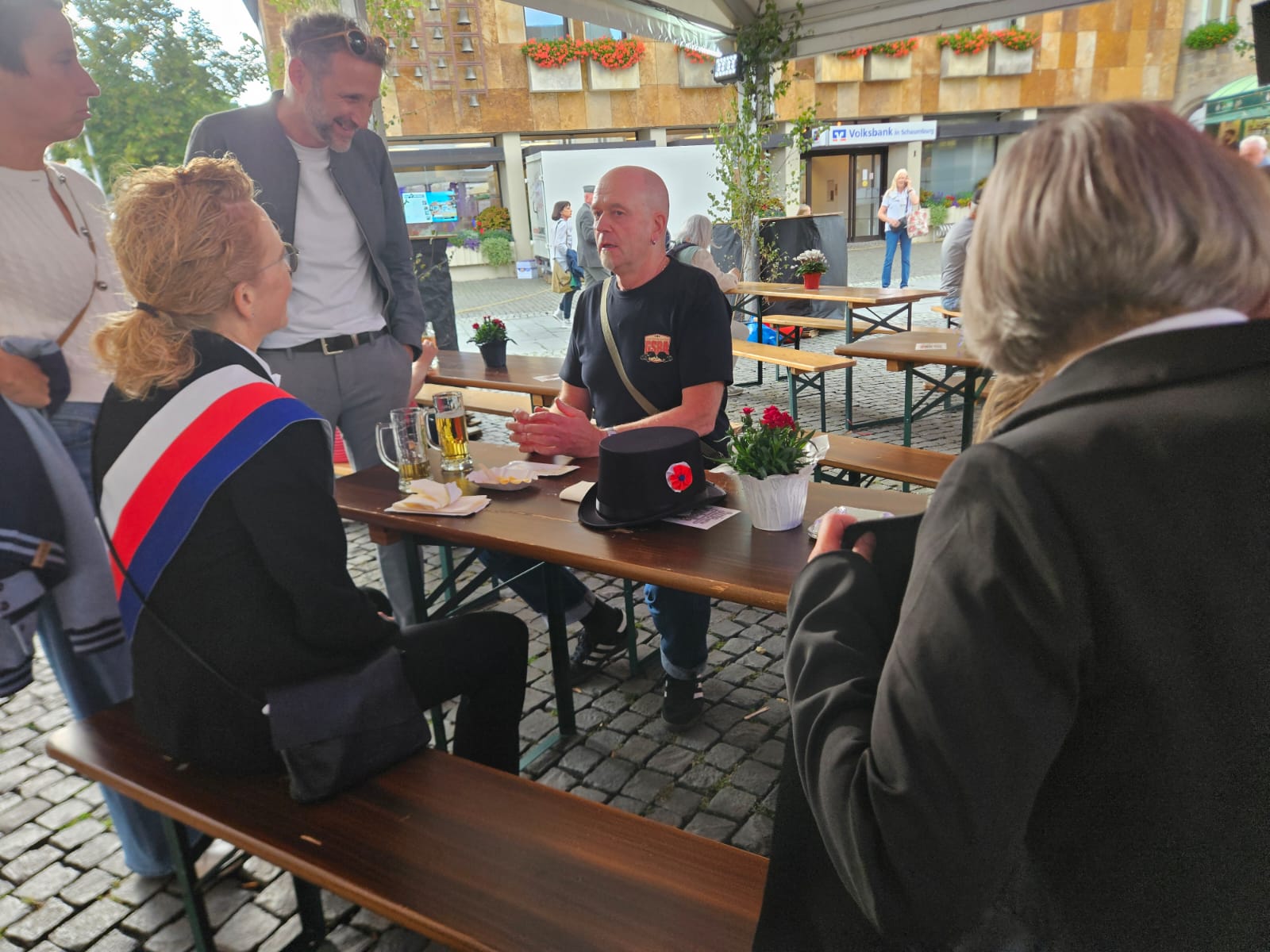 Die Vorbereitungen starteten bereits bei unserem monatlichen Stammtisch am 4. August 2025. Zu Gast waren Stadtmajor Martin Brandt sowie sein Adjutant Reiner Walter. Nach einer eindrucksvollen Präsentation des Stadtmajors beantworteten beide ausführlich die Fragen der Anwesenden und gaben spannende Einblicke in die Traditionen des Bürgerbataillons.
